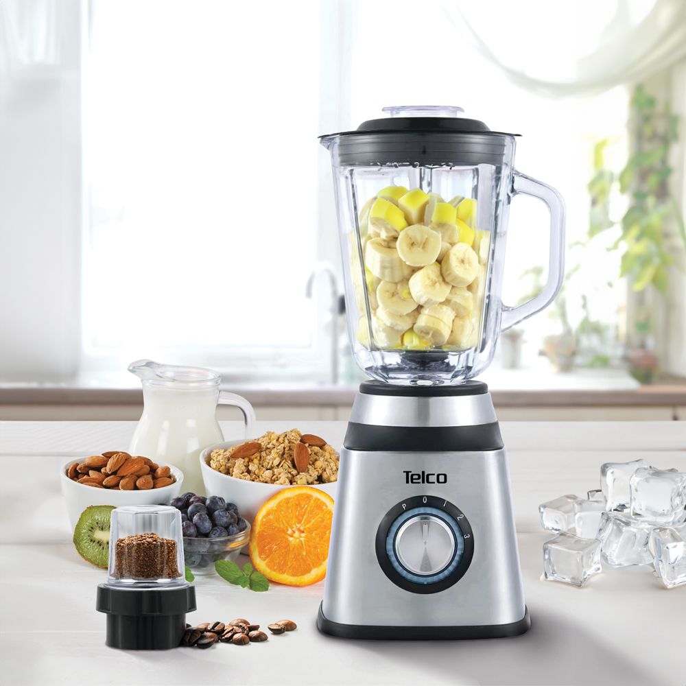 Μπλέντερ Telco με Γυάλινη Κανάτα 1.5lt 1000W και Μύλο Αλέσματος Inox 217337003